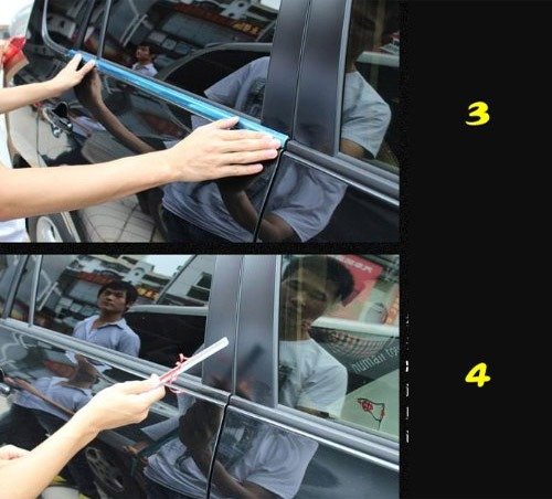 Installation process : 1. Before install, blow the strip with Sirocco from hairdryer for better adhesiveness. 2. Clean the application area with rubbing alcohol or water. 3. Remove the strip adhesive covering. 4. Apply the trim in the location. 5. Do not wash your car within 2~3 days after you stick.