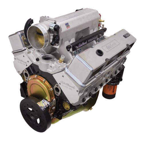 “Performer RPM” Crate Engine with “Pro-Flo” EFI; Includes a complete Edelbrock “Pro-Flo XT” electronic fuel injection system with 90mm throttle body. ; 9. 5 : 1 compression, 440 horsepower, 425 ft/lbs torque; Does not include water pump