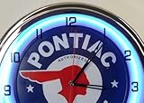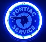 - Title:Pontiac Service 15″ Neon Clock Parts Car Garage Emblem Logo Sign Judge Firebird Blue