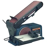 Belt is easily removed or tension adjusted with accessible spring lever. Like two tools in one, it readily does the work of each, just in a more efficient and space-friendly design. Comes with a cast aluminum worktable that securely locks into place or can be removed altogether depending on the job situation. 6″ x 8-1/2″ machined cast aluminum locking worktable. Removable worktable. Motor : 120V 60Hz, 3,450 RPM, 3. 6 Amps, 1 PH, 1/2 HP Dimensions : 18″ x 14. 5″ x 11″ Includes : Sanding belt : 4″ x 36″ Abrasive disc : 6″ UL cord and plug.