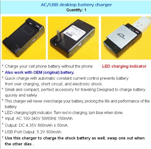 Universal Li-ion battery external desktop Charger for smartphones : * This universal delstop battery charger will charge virtually any smartphone Li-on batteries in the market. ..More Info