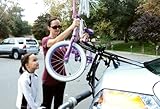 Padded lower frame keeps bicycles away from vehicle. Patented sure strap lower strap keeps bottom hook in place during use. Comes fully assembled – installs in seconds. Black powder coated finish.